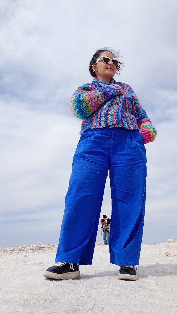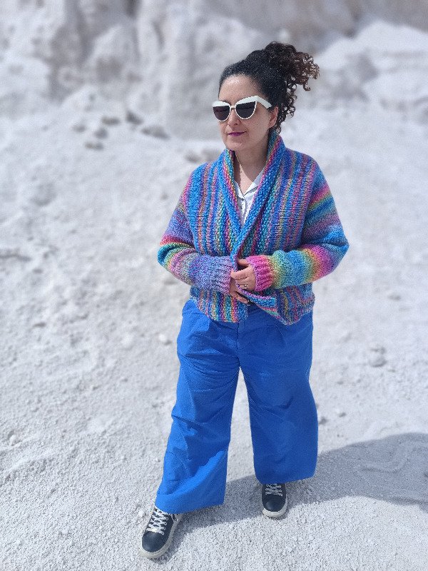 En este archivo encontrarás 2 formas de hacer este cardigan: una es por talles, con detalle de puntos para cada tamaño, de acuerdo al hilado superbulky y su digitación de puntos: el que usé en el original. La segunda, es para que puedas adaptarlo a cualquier hilado, pero las cuentas las vas a tener que hacer vos. Por suerte, no son muchas y podés ir probándote en cada paso para que te quede perfecto a tu medida. Vas a necesitar solamente medir tu puño, contorno de brazo, ancho de espalda y largo de hombro. Luego, de acuerdo a los puntos y vueltas que te dé la muestra de tu hilado, deberás ir calculando con una regla de 3 simple, cuántos puntos y vueltas deberás tejer ¡Buena suerte con la matemática!